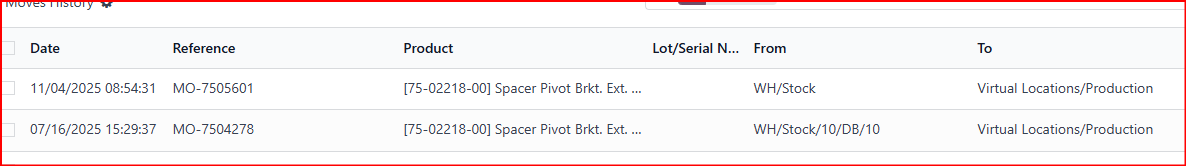 Here is an example of where it did it right then the next time it was wrong.  Both MO's are for the same parts.  This is the from moves history.