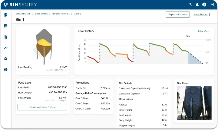 BinSentry’s technology supports feed mills as well as pork and poultry integrators by reducing feed costs (the single largest expense in raising animals), improving safety, and enabling healthier, faster-growing animals. By eliminating the need for workers to climb bins and silos and enabling real-time issue identification and resolution, the company improves safety while increasing productivity and profitability across customer operations.