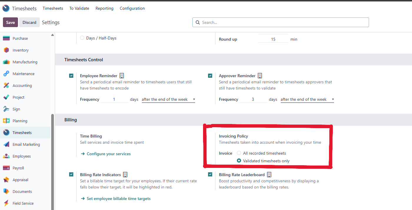 Odoo 17 CE self-hosted, timesheets not available? Çözüldü