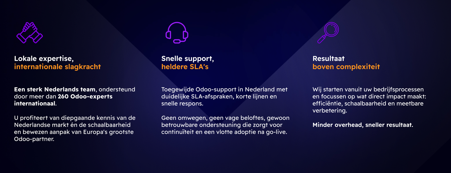 Dankzij onze jarenlange Odoo-kennis en ervaring in diverse sectoren weten wij perfect hoe we u op een gerichte en efficiënte manier kunnen ondersteunen.