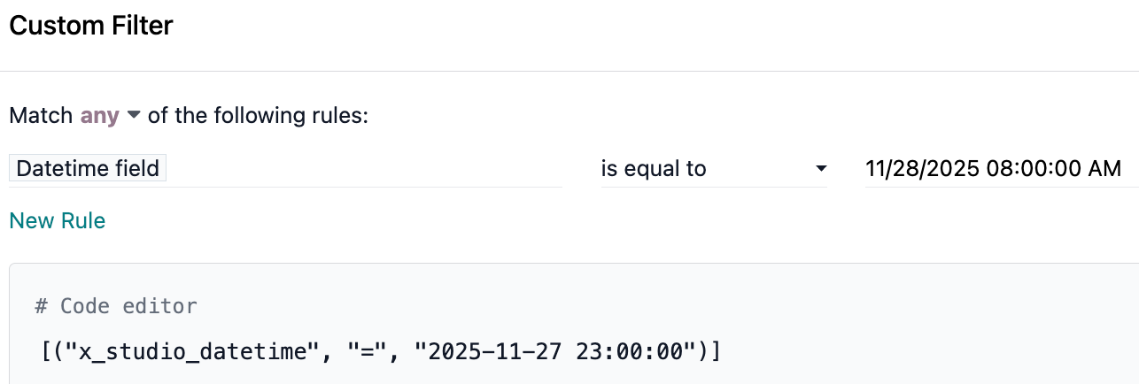 <span t-field="doc.x_studio_datetime" t-options="{'widget': 'date'}"/><span t-out="doc.x_studio_datetime.strftime('%d/%b/%Y %I:%M %p')"/>Date components | Time components | ||||||||||||||||||||||||||||||||