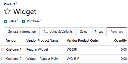 Next, setup the information in the same way. On the Purchase tab of the Product, below your Vendors if applicable, add a line for each Customer with the unique Product Code and/or Product Name.